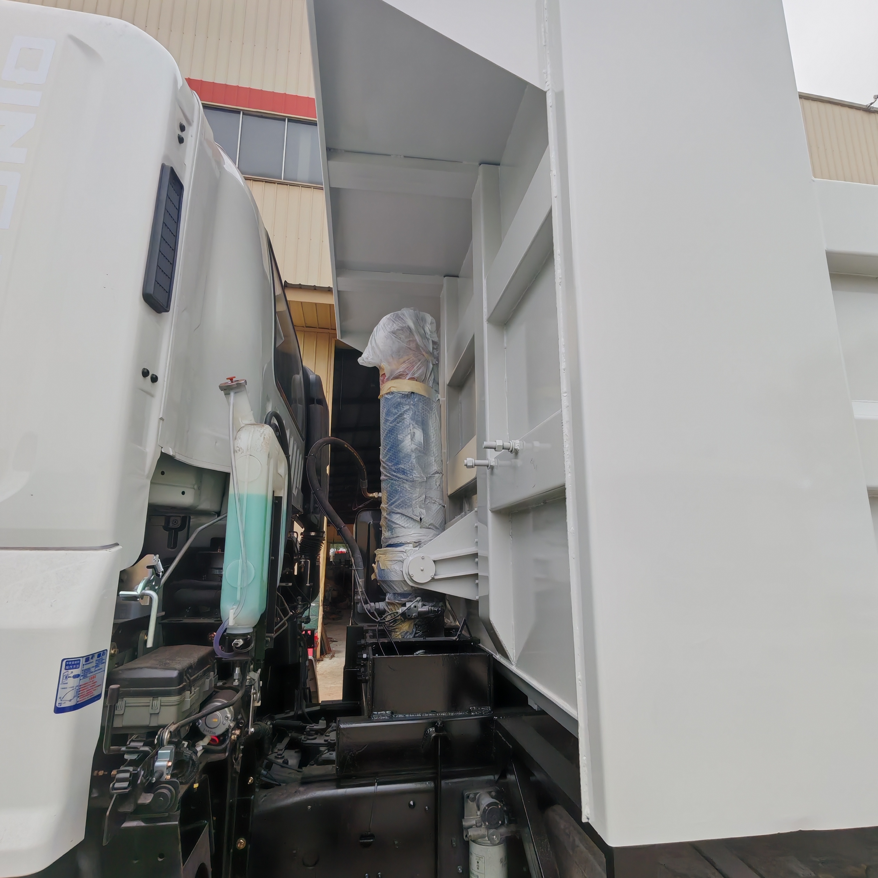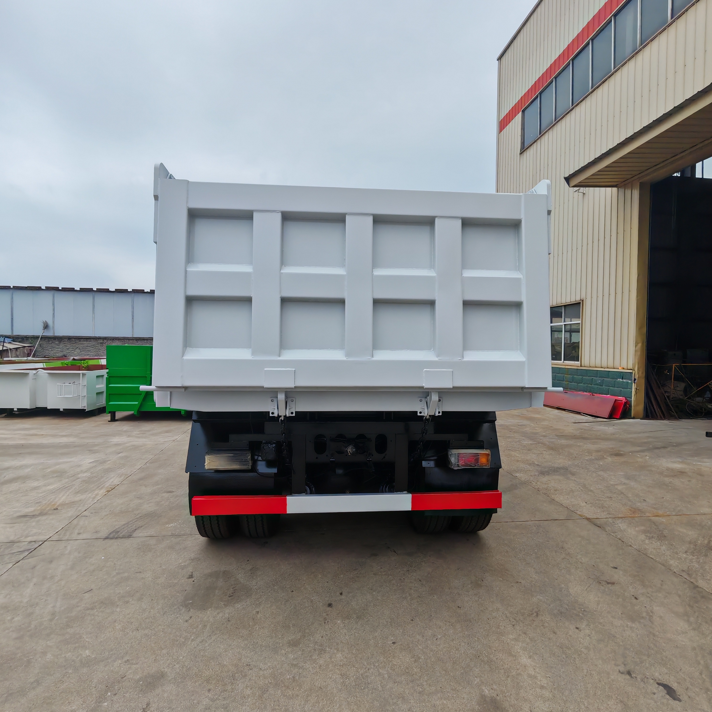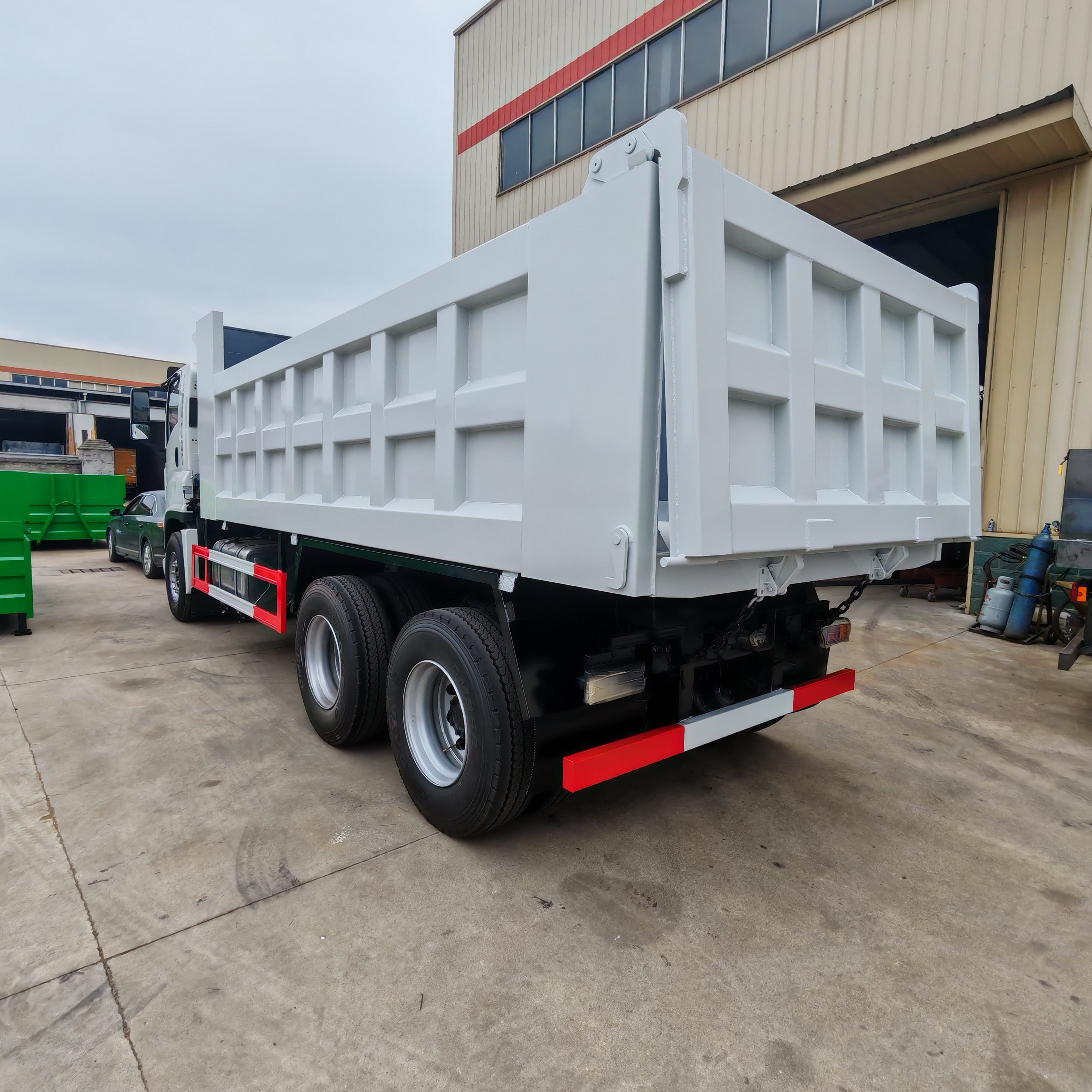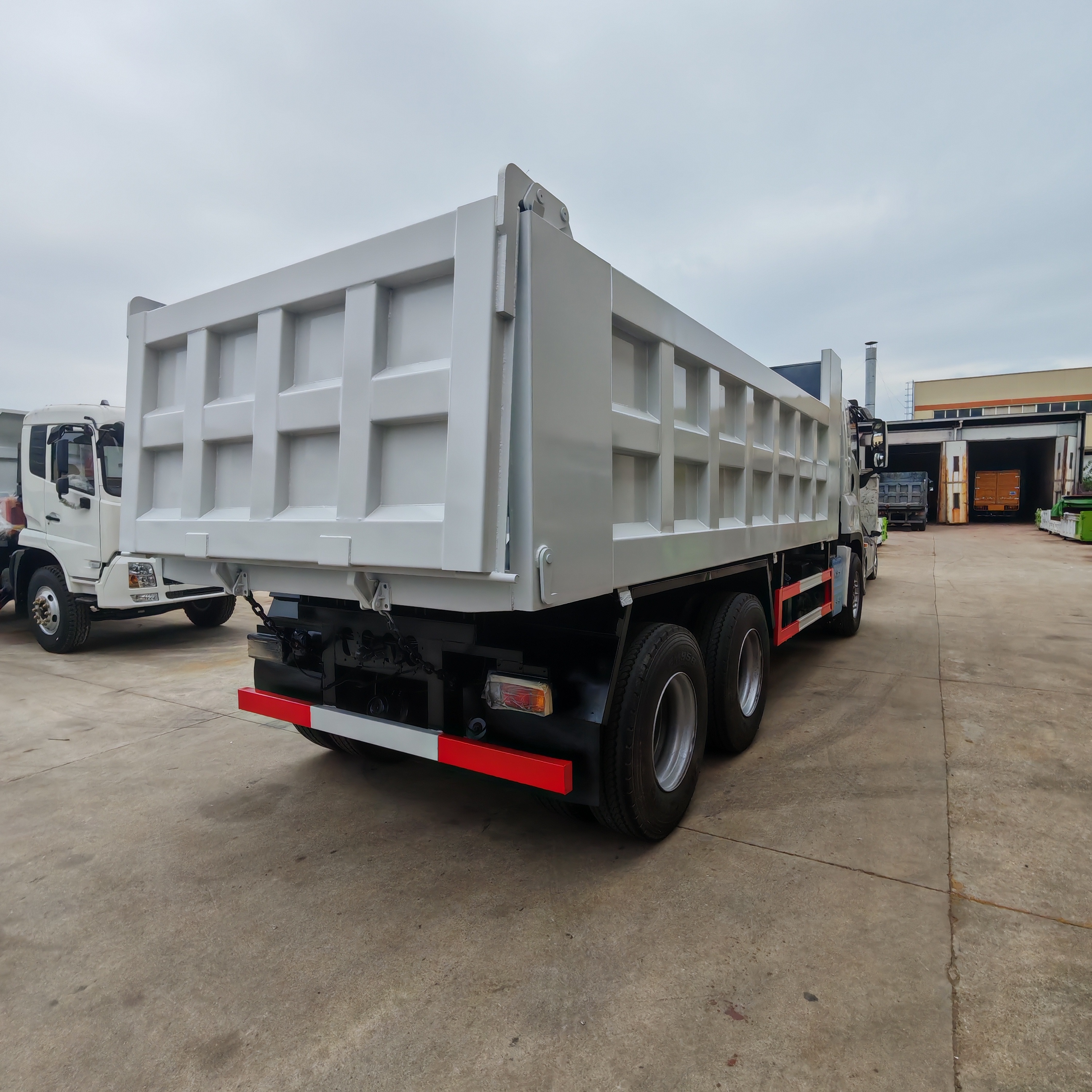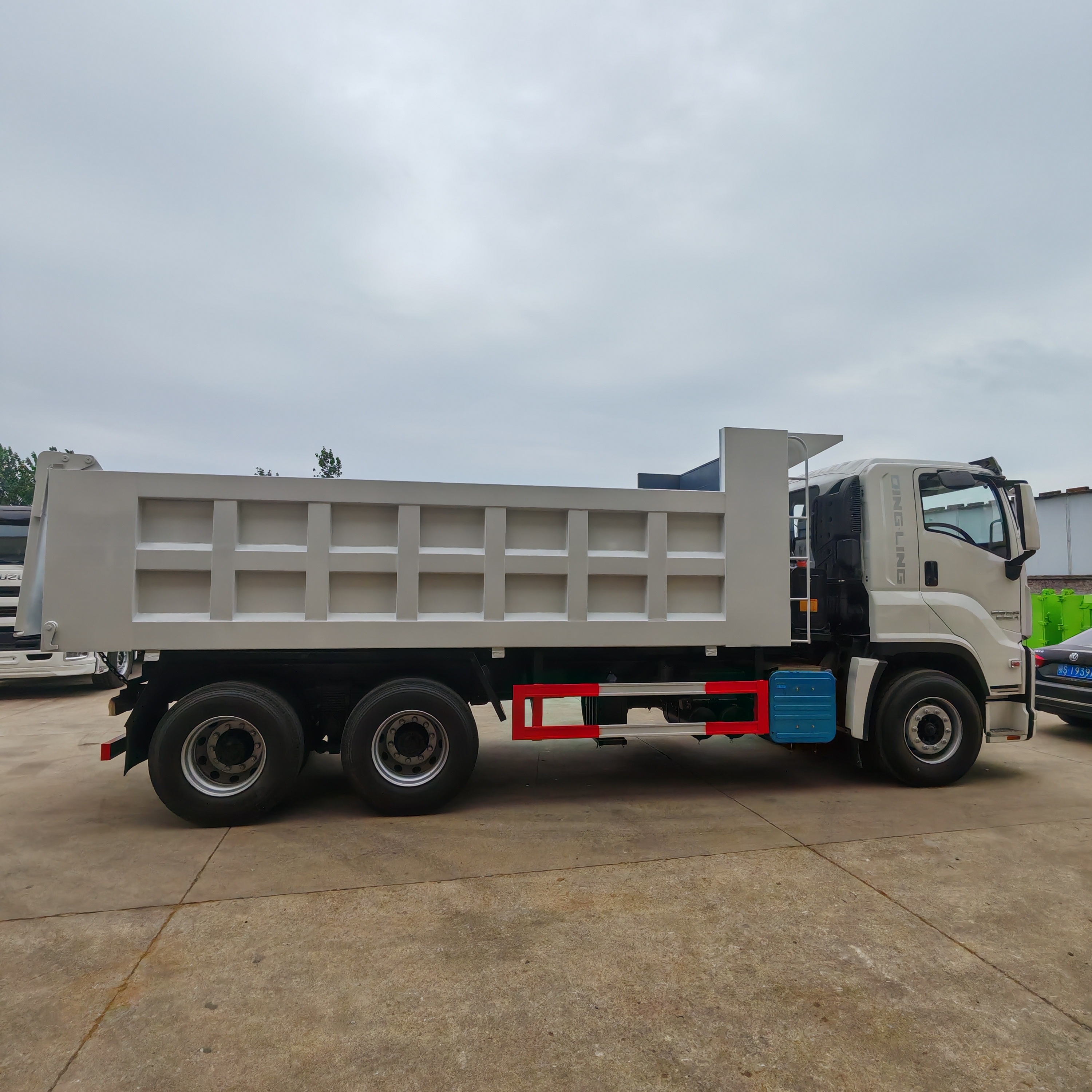 5600 * 2300 * 1200mm, Q235 manganese plate, bottom 8 sides 6, cross shaped grid, integral mudguard, front and rear lampshade, side lights and new small lampshade. The color of the box is consistent with that of the driver's cabin, the whole vehicle is sprayed with wax, the fuel tank anti-theft lock, and the small toolbox.