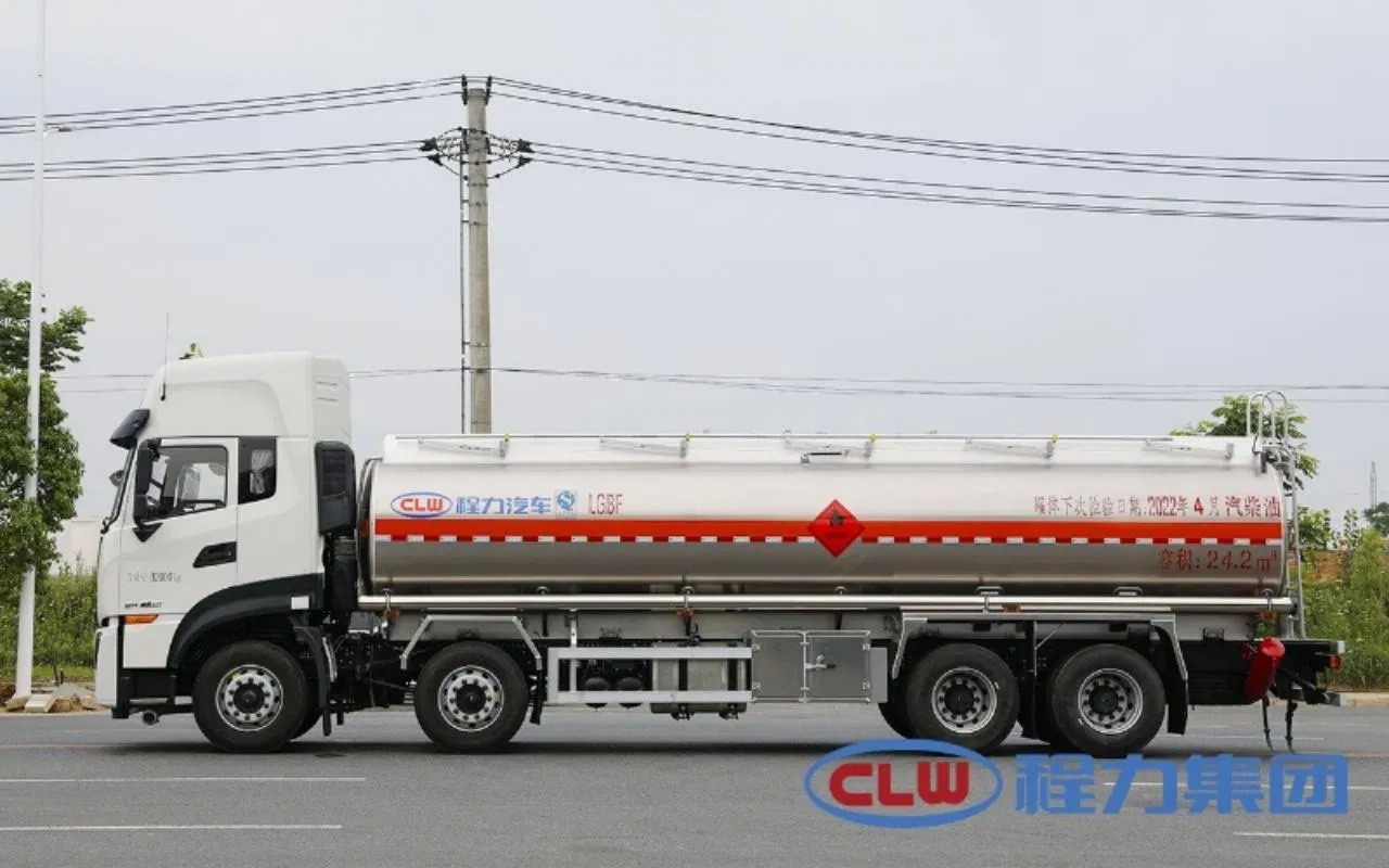 Upper configuration: The effective volume of the tank body is 24.8 cubic meters (Yunnan standard diesel gasoline tank) or 25.5 cubic meters (diesel gasoline tank), 30 cubic meters (gasoline tank), made of 5182 aluminum alloy plate, with 6 thick tanks, 6 thick heads, and 6 thick partitions. It has a single compartment, two European standard tank ports on the top of the tank, 1 new intelligent shut-off valve, 1 set of lower oil loading (unloading valve, oil vapor recovery, anti overflow probe, anti-static reel), equipped with an 80-60 special oil pump (can pump in and out). The rear ladder, manual guardrail, toolbox, rear bumper, and side guardrail are all made of aluminum alloy plate, made according to the new standard. Other manufacturers come standard with tank body inspection reports. Provide chassis certificate, vehicle certificate, and household invoice.