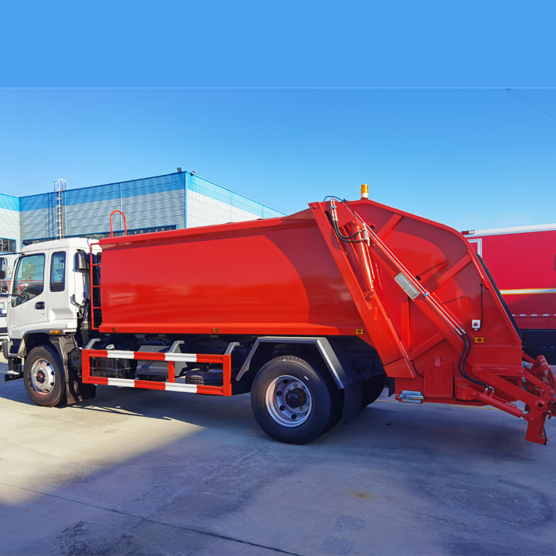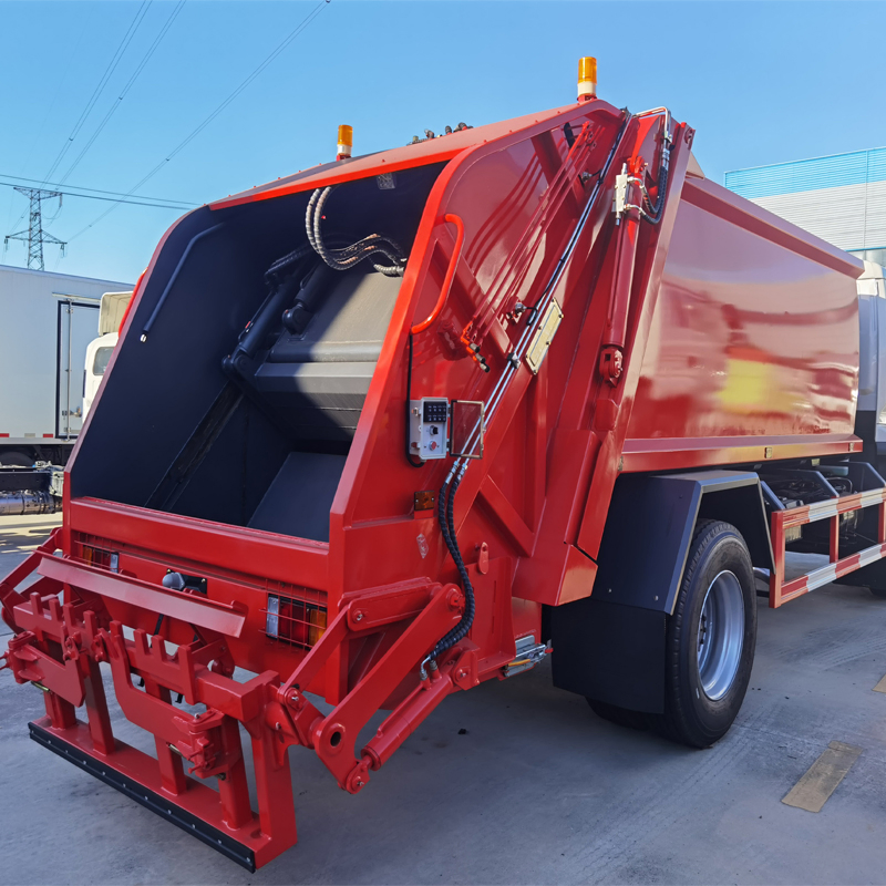 The entire vehicle is fully enclosed, utilizing integrated electrical and hydraulic technology. Through a combined automatic control system of machinery, electricity, and hydraulics, it uses specialized devices such as the garbage bin, filler, and pusher to achieve the processes of dumping, crushing or flattening, and forcefully lifting and filling the garbage into the truck, where it is compacted and discharged. All wastewater generated during the compression process is directed into a wastewater tank, effectively addressing the issue of secondary pollution during garbage transportation. Users can choose different bucket flipping mechanisms based on their specific waste collection methods: standard garbage iron bucket (300L), plastic garbage bin (240L), and plastic garbage bin (660L),plastic garbage bin (1100L)