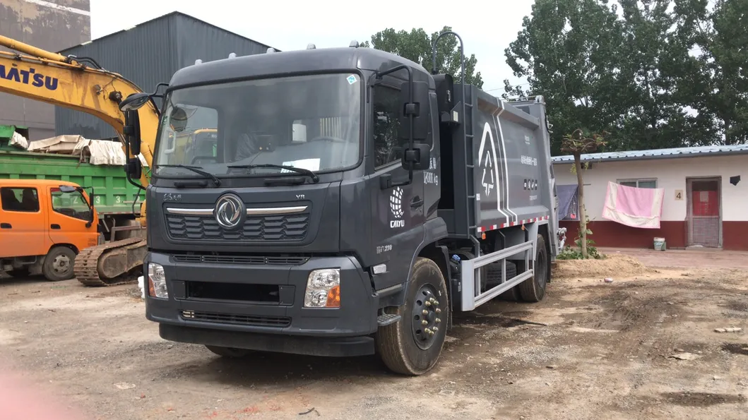 Dongfeng Tianjin 14-way compressed garbage truck adopts Tianjin VR semi-standard top cab, sanitation vehicle special chassis, 4500MM wheelbase, Cumins 230 horsepower engine, Faster small 8-speed gearbox, plate spring 8/10+8, front axle 4.5T, rear axle 9T single reduction, frame 250×80×7+4, steel 160L fuel tank, 10.00R20 18PR wire tire, electric glass, central control lock - non-remote control, air conditioning, national joint warranty.