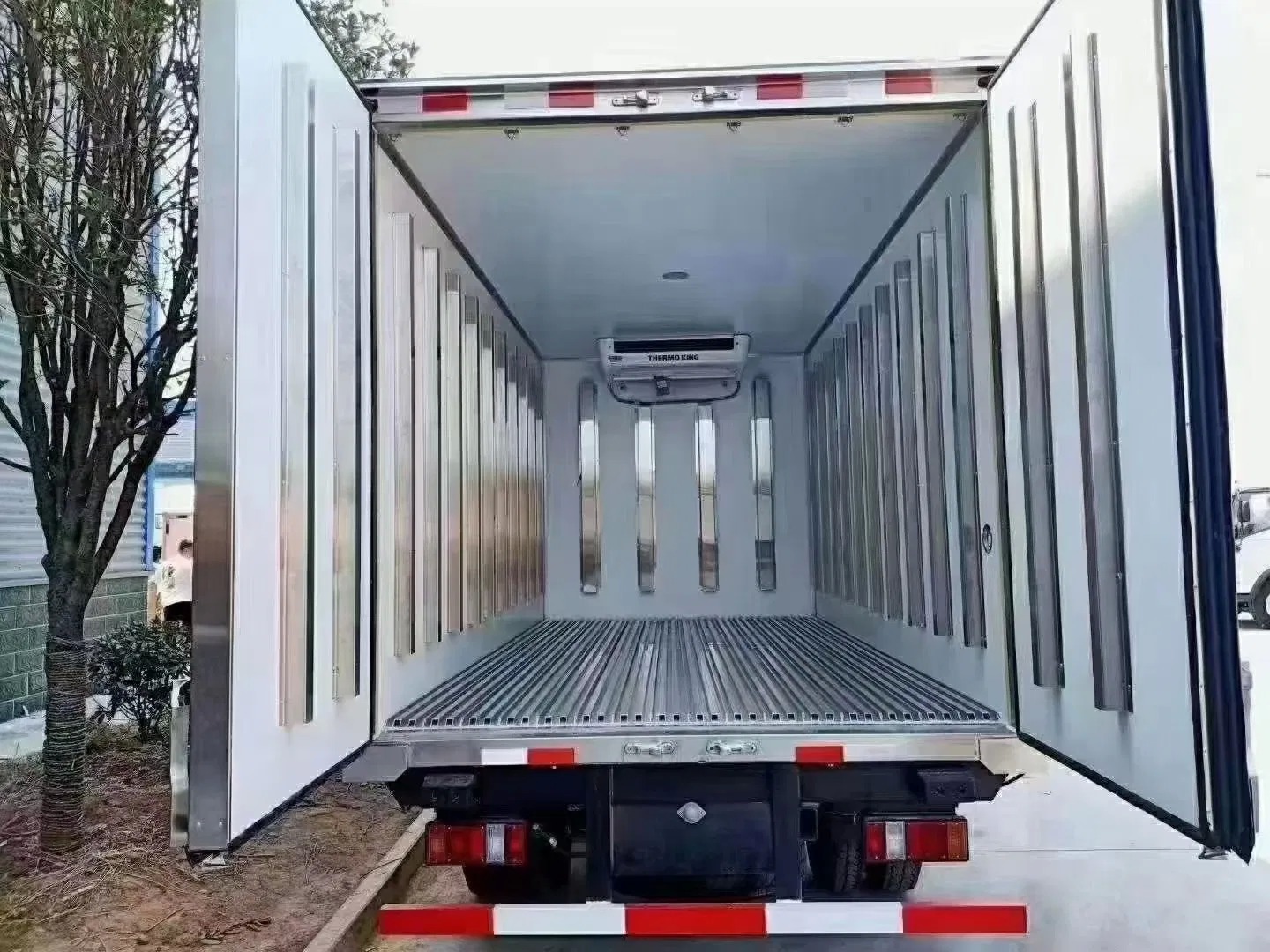Refrigerated trucks are closed van transport vehicles used to transport frozen or fresh goods. They are special refrigerated transport vehicles equipped with a refrigeration unit and a polyurethane insulated compartment. They are commonly used to transport frozen foods (refrigerated trucks), dairy products (dairy transport trucks), vegetables and fruits (fresh goods transport trucks), vaccines and medicines (vaccine transport trucks), etc.